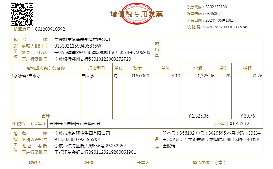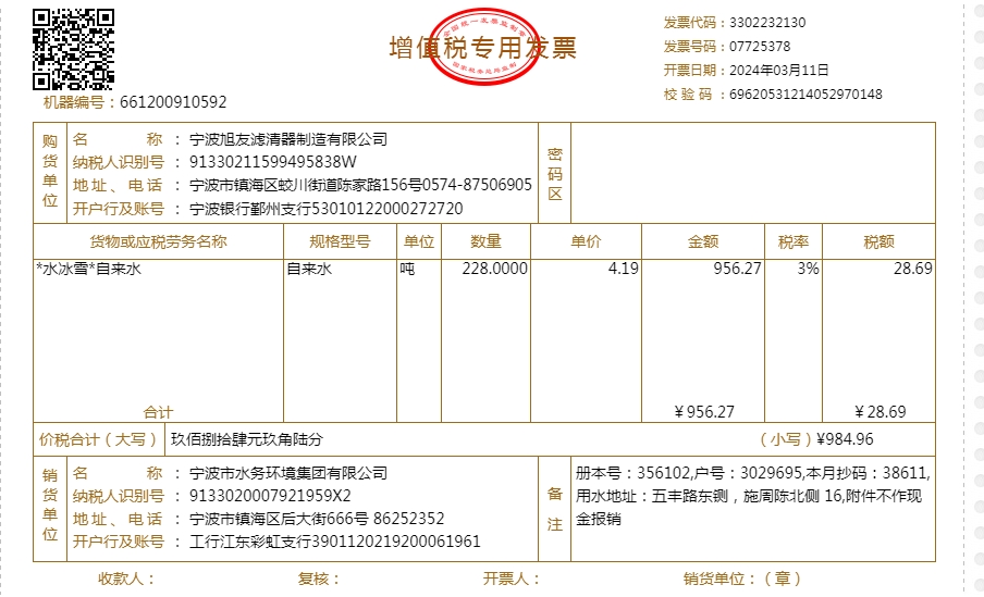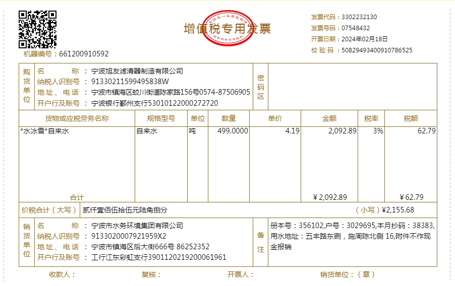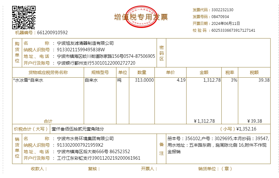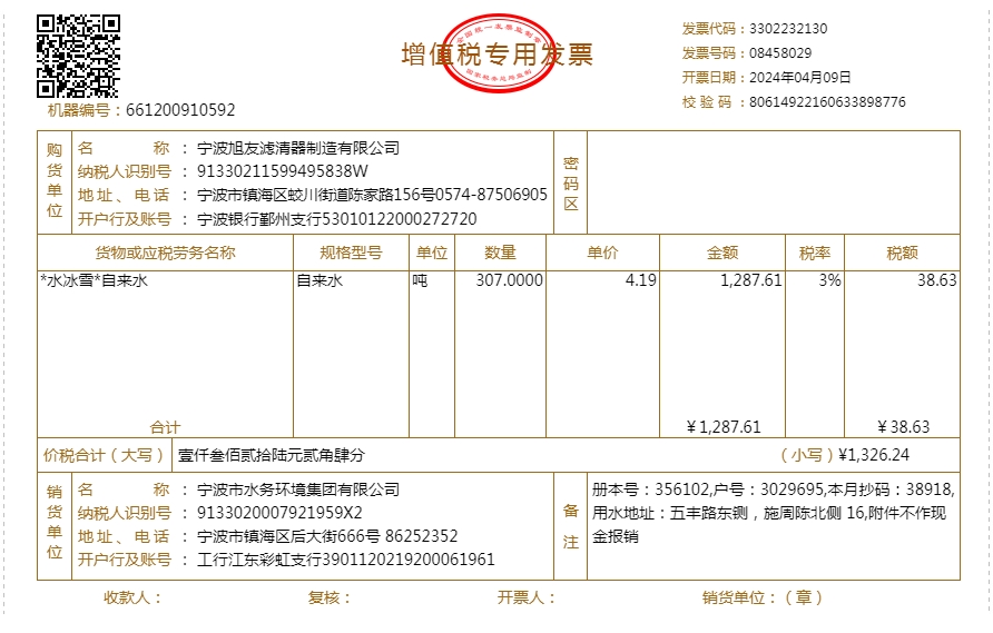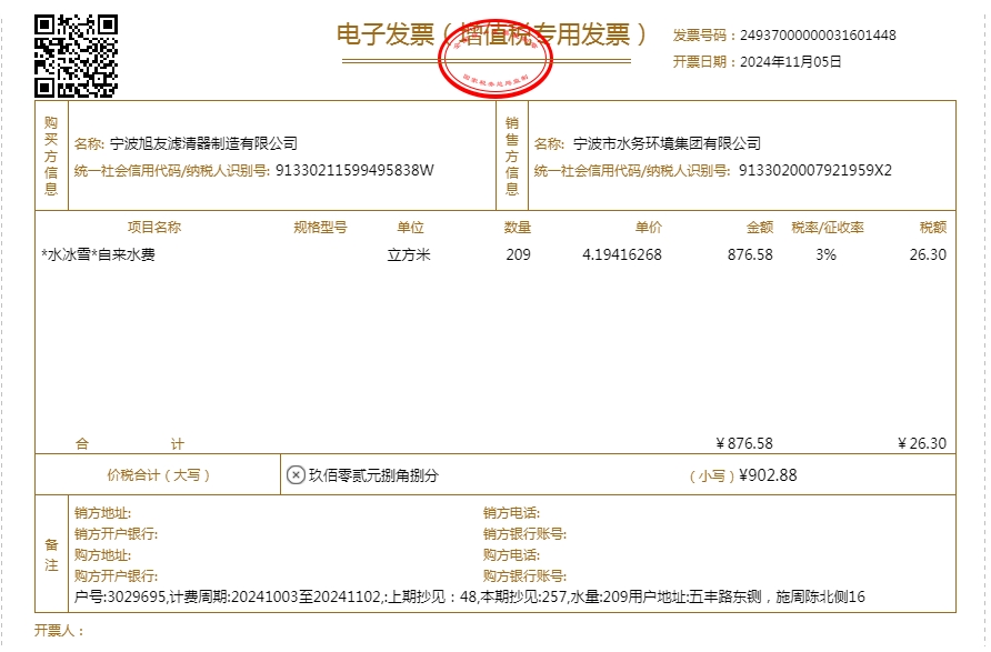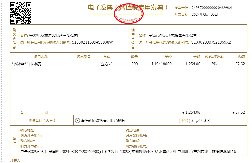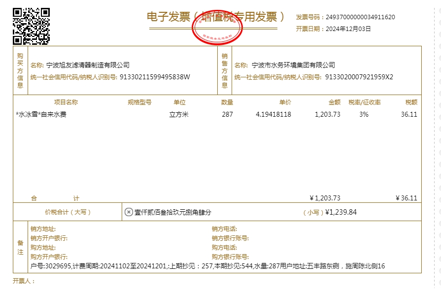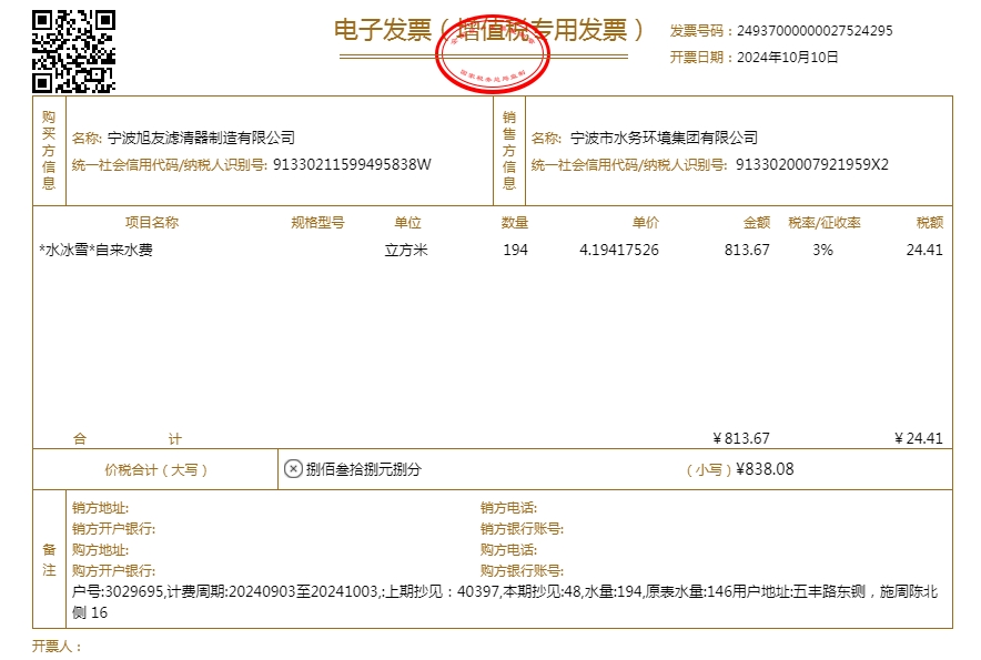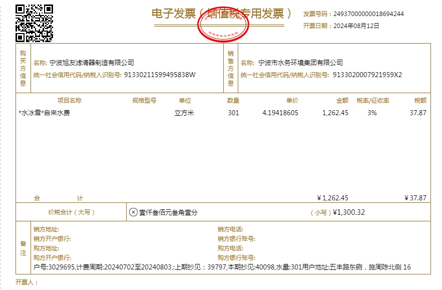 2024年水费发票